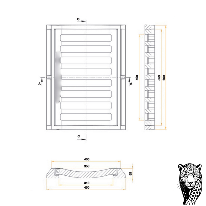 | Oluklu Yağmur Suyu Izgara Takımı / Sfero Döküm 450x600x55 mm | PR-4001 | 450x600x55 | GG 25 / D400 / 60 (±) 2 KG |