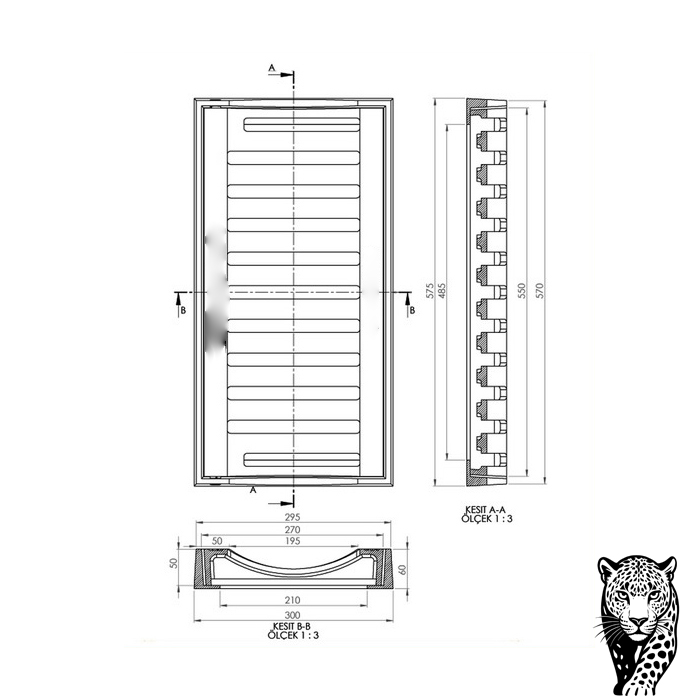 | Oluklu Yağmur Suyu Izgara Takımı / Sfero Döküm 300x500x50 mm | PR-4005 | 300x500x50 | GGG50 / B125 / 15 (±) 2 KG |