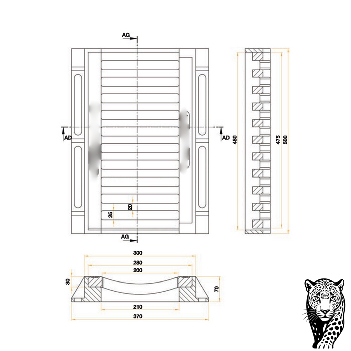 | Oluklu Yağmur Suyu Izgara Takımı / Sfero Döküm 370x500x70 mm | PR-4003 | 370x500x70 | GGG50 / D400 / 32 (±) 3 KG |