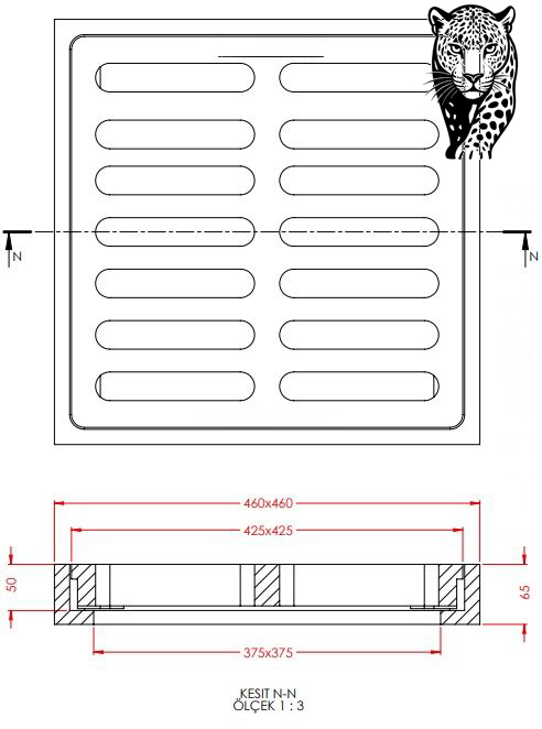 | Yağmur Suyu Izgara Takımı / Sfero Döküm 460x460x65 mm | PR-3002 | 460x375x65 | GGG50 / D400 / 50 (±) 3 KG |